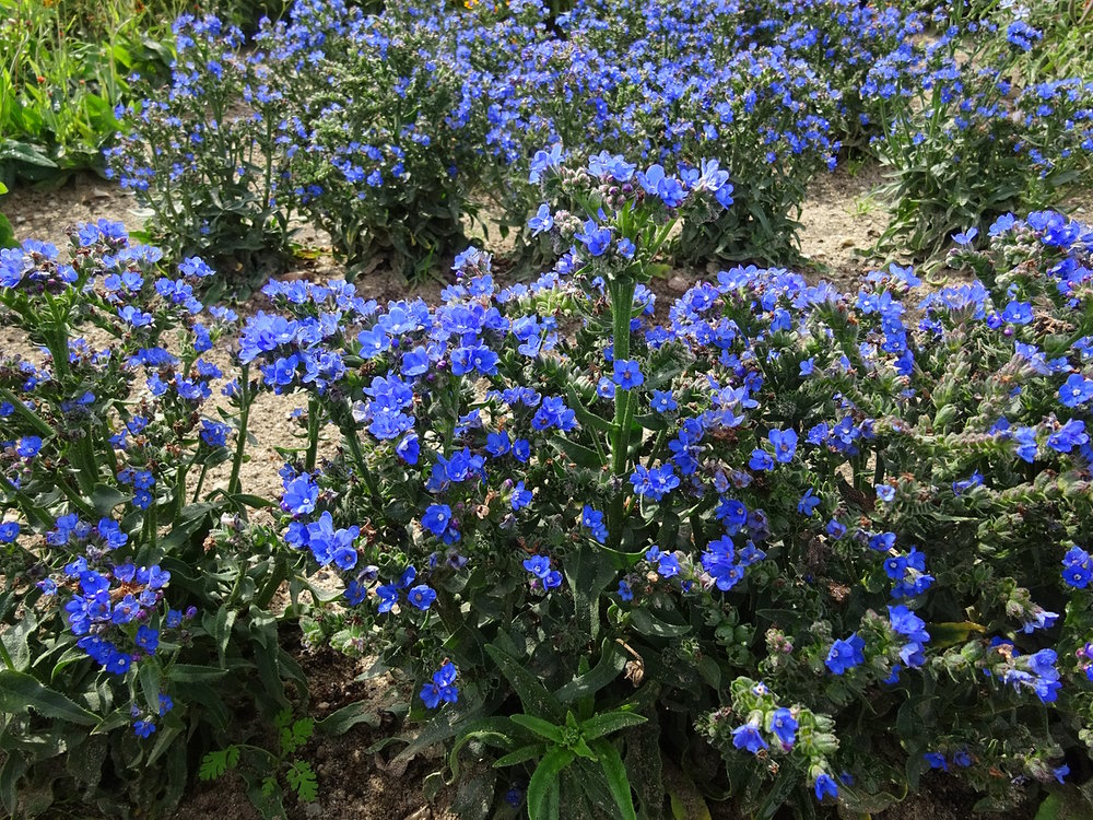 Anchusa capensis ist eine unkomplizierte Einjährige für sonnige Standorte. Sie eignet sich auch als Lückenfüller in Staudenbeeten und großen Steingärten. Passt sich den Bodenverhältnissen an: ideal, wie hier beschrieben, wächst sie auf mittleren Böden. Auf mageren, sandigen Böden bleiben die Pflanzen niedrig und klein, auf fetten Böden kann sie durchaus höher werden als hier angegeben, fällt dann aber leicht auseinander.